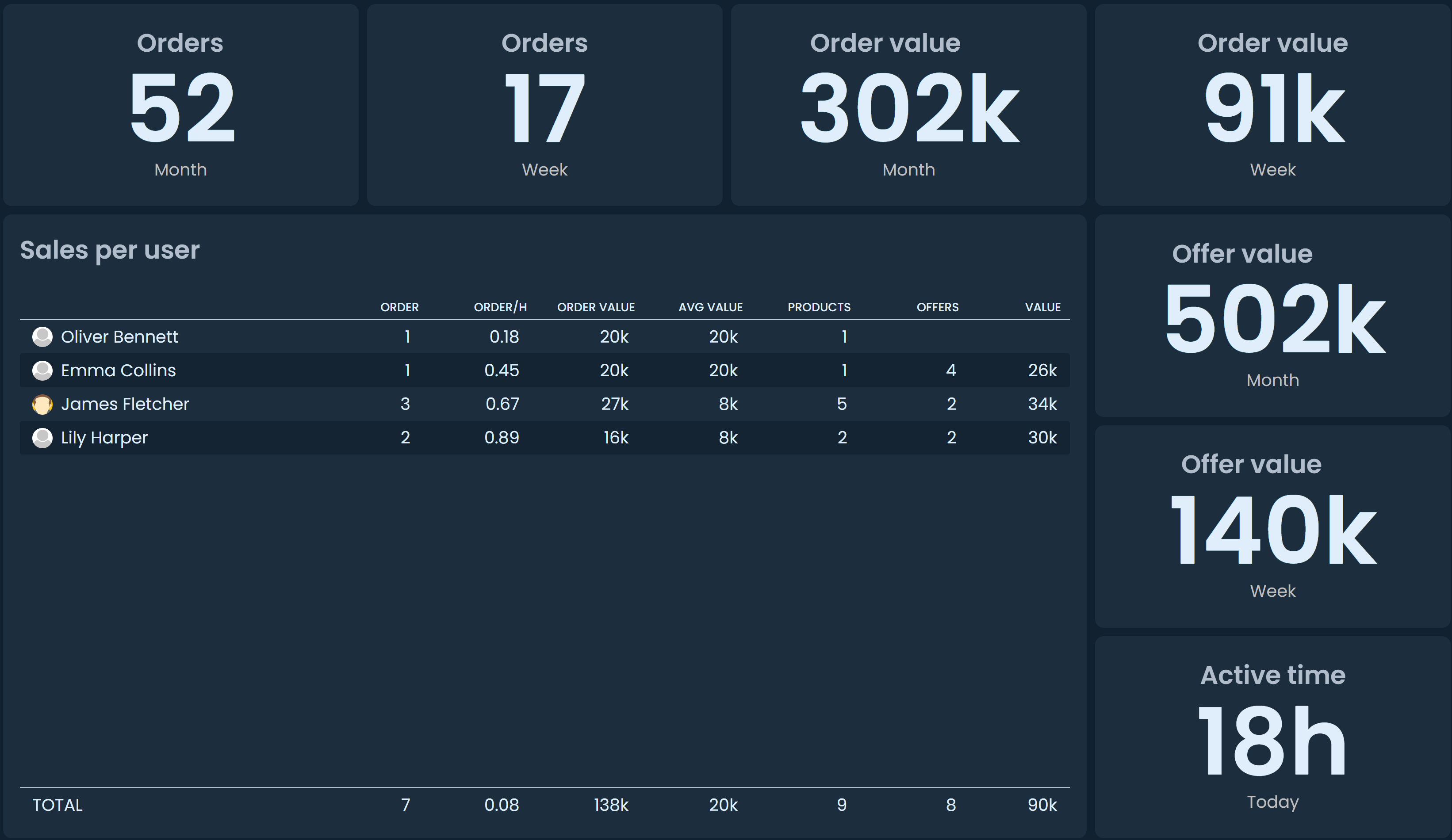 • New list components for sold products per user, project, or group. The list shows the best-selling products during the selected time period, along with the total sum of all products sold.