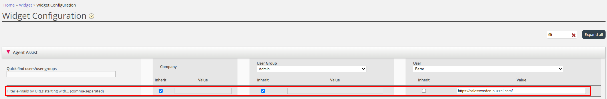 To select which URLs that should be opened within the Agent Application please navigate to the Admin Portal and find the property "Filter e-mails by URLs starting with... (comma-separated)" under Widget -> Widget Configuration -> Agent Assist.