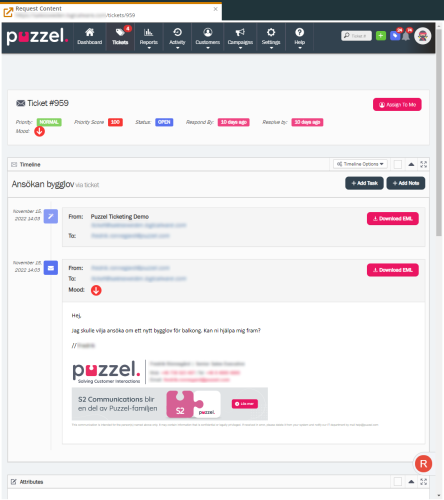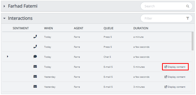 When Agent Assist fetches the interaction history of a contact a list of interactions are displayed together with the related information of individual interactions. Previously when an email/eTask interaction was displayed there was no way of seeing the content of the historical interaction. We have now added a new button called "Display content" that once clicked it will open the URL attached to the email/eTask request. The URL can be configured to be opened up within the Puzzel Agent Application or in a separate browser tab.