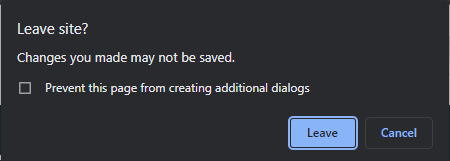 • An improvement to the logout warning when still logged on to a profile has been introduced. The improvement is that if an Agent tries to close the browser or the browser tab while still being logged on to a profile the browser will prevent the Agent from doing so by displaying a warning.