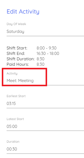The editing of other attributes for Holiday, Absence, Overtime, Lunch, Break & Available Activity Templates has been restricted. We still have features that require these particular Activity Templates. While you can change their names, please do not radically change the meaning!
