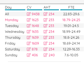 Genom att klicka på pennikonen kan volymerna ändras. Om du ändrar veckosiffrorna ändras prognosen per dag i förhållande till den ursprungliga volymen.